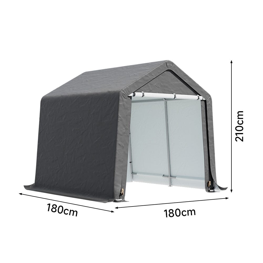 Description. Explore the potential of our adaptable storage shed, which is made to go above and beyond your expectations for outdoor storage. It does a great job of organizing and protecting your outside necessities from the weather, including gardening tools, patio furniture, firewood, and bicycles. It is sturdy and resistant to wind gusts because to its sturdy galvanized steel pipe support. Your items are guaranteed to remain dry and shielded from rain and sunlight thanks to the waterproof cover. With so many size possibilities, you can easily customize your shed to meet your specific storage needs. Experience practicality and durability in this one compact solution.. Features. Sloped roof prevents rain and snow from accumulating. Spacious roll-up door is large and tall enough for easy entry and exit. High quality galvanized pipes for upgraded and strength and stability. Specifications. Size Optional:. 4×6 ft. 6×6 ft. 8×8 ft. 8×12 ft. 10×10 ft. 10×20 ft. Dimensions:. 120cm W x 181cm D x 163cm H. 180cm W x 180cm D x 210cm H. 240cm W x 240cm D x 230cm H. 240cm W x 360cm D x 230cm H. 300cm W x 300cm D x 245cm H. 300cm W x 600cm D x 255cm H. Material: 160gsm PE+Galvanized Steel. Colour: Dark Grey. Floor Included: No. Windows Included: No. Number of Doors: 1. Door Style: Roll-up. Ventilation Included: No. Shed Door Style: Zip Door. Built-in Shelving Included: No. Assembly Required: Yes. Package Content. 1 x Storage Shed