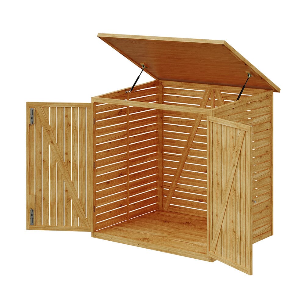 Description:. Keep your bicycle protected in this high-quality wooden bicycle shed. Crafted from durable cedar wood, it features a weather-resistant asphalt roof for extra protection against the elements. The stainless steel door latch and locking mechanism ensure security, while the hydraulic rod makes opening and closing the door easy. Available in two sizes, this shed is ideal for keeping your bicycle safe and organized while maintaining an attractive, rustic aesthetic for your garden or yard. With a bottom board included, it provides extra stability and durability.. Features:. Durable Cedar Wood Construction: Made from strong cedar wood, this shed offers a natural aesthetic with long-lasting durability.. Weather-Resistant Asphalt Roof: The asphalt roof ensures protection against rain, snow, and harsh weather conditions.. Stainless Steel Locking Mechanism: Features a stainless steel door latch and lock for added security and peace of mind.. Hydraulic Door Rod: Equipped with a hydraulic rod for easy and smooth door operation.35 x 107.5 x 134 cm. Two Size Options: Available in 135 x 107.5 x 134 cm, 200.5x93x132 cm and 220x103x133 cm to fit different space requirements.. Includes Bottom Board: Provides additional stability and protection for the shed’s base.. Specifications:. Material:. Wood: Cedar wood. Roof: Asphalt. Door Lock: Stainless steel. Dimensions:. 4.43 × 3.53 × 4.40 ft. 6.58 × 3.05 × 4.33 ft. 7.22 × 3.38 × 4.36. Roof Style: Asphalt. Included Features:. Stainless Steel Latch & Lock. Hydraulic Rod. Bottom Board. Usage: Outdoor use only. Color: Natural wood finish with asphalt roof. Instruction Manual:. 4.43 × 3.53 × 4.40 ft(Download). 6.58 × 3.05 × 4.33(Download). 7.22 × 3.38 × 4.36(Download). FAQ. Q: Is this bicycle storage shed made of wood?Yes, this shed is made of high-quality wood and features a durable, weather-resistant construction, perfect for storing your bicycle securely.. Q: Does this bicycle shed come with a lock?Yes, the bicycle shed is equipped with a stainless steel locking mechanism to ensure the safety of your bicycle and other stored items.. Q: Can this shed be used for other outdoor storage?Yes, this outdoor bicycle shed can also be used to store other garden tools and equipment, making it a versatile addition to your garden or backyard.. Q: Is there a plastic version of this bicycle shed?Yes, we offer a plastic bicycle shed option for those who prefer a more lightweight and weather-resistant alternative.. Q: How much space does this shed provide for bike storage?The shed is available in three sizes (135×107.5×134 cm, 200.5x93x132 cm and 220x103x133 cm), providing ample space for storing one or multiple bicycles.. Q: Can this shed withstand harsh weather conditions?Yes, the weather-resistant asphalt roof and solid wooden construction ensure that your bicycle is protected from rain, snow, and other harsh weather elements.. Q: Is assembly required for this bicycle shed?Yes, some assembly is required, but the shed comes with all necessary hardware and instructions to make the process easy.. Q: Can I place this shed in my garden?Absolutely! This bicycle shed is designed for use in gardens, backyards, or patios, adding both functionality and rustic charm to your outdoor space.